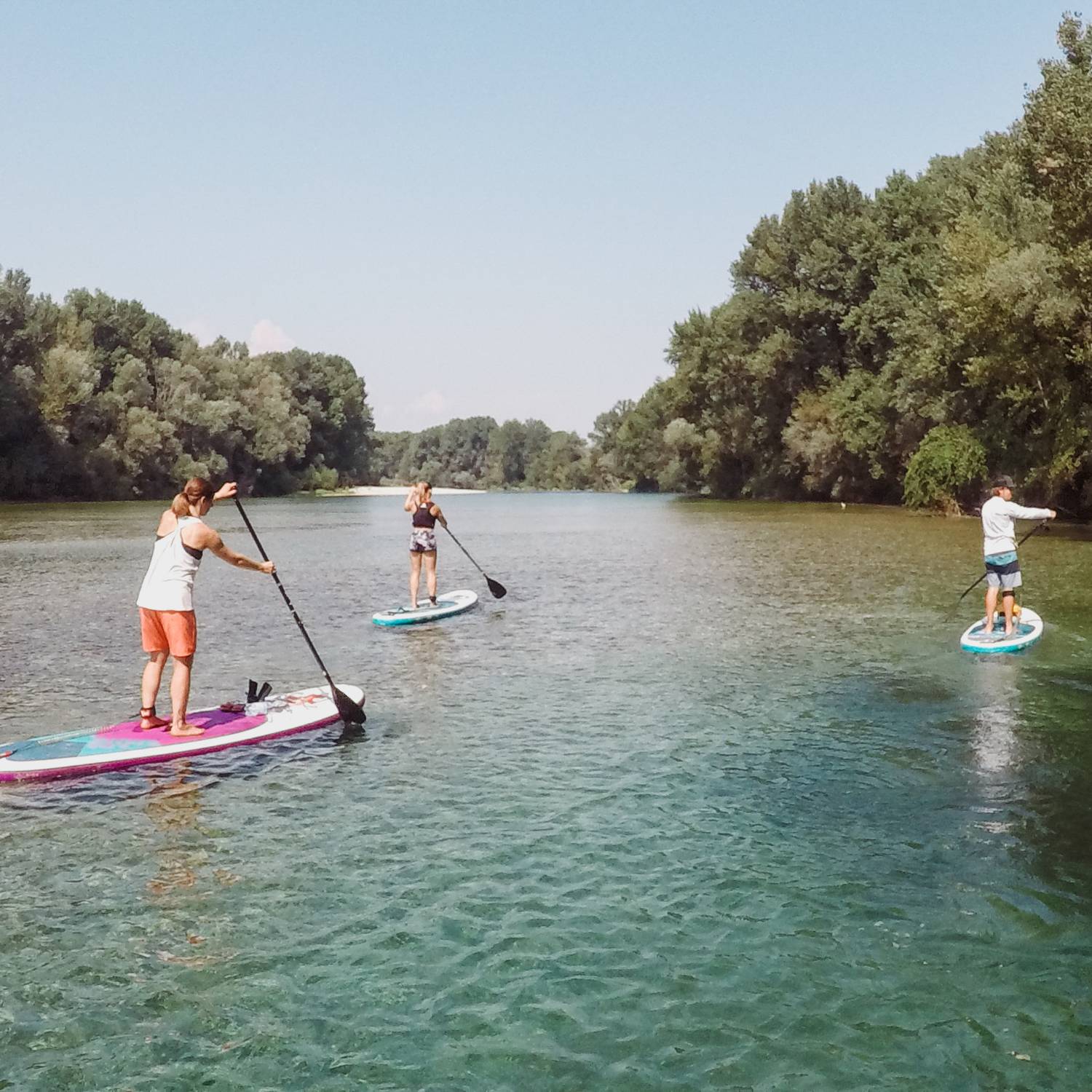 Odkrij skriti biser reke Soče na SUP izletu! Supanje po mirnem spodnjem toku Soče vse do njenega izliva v morje je posebno doživetje, kjer se reka umiri, pokrajina odpre in tempo upočasni. Čaka te približno 10 km sproščenega veslanja v objemu narave, z dovolj časa za uživanje v vodi in razgledih.