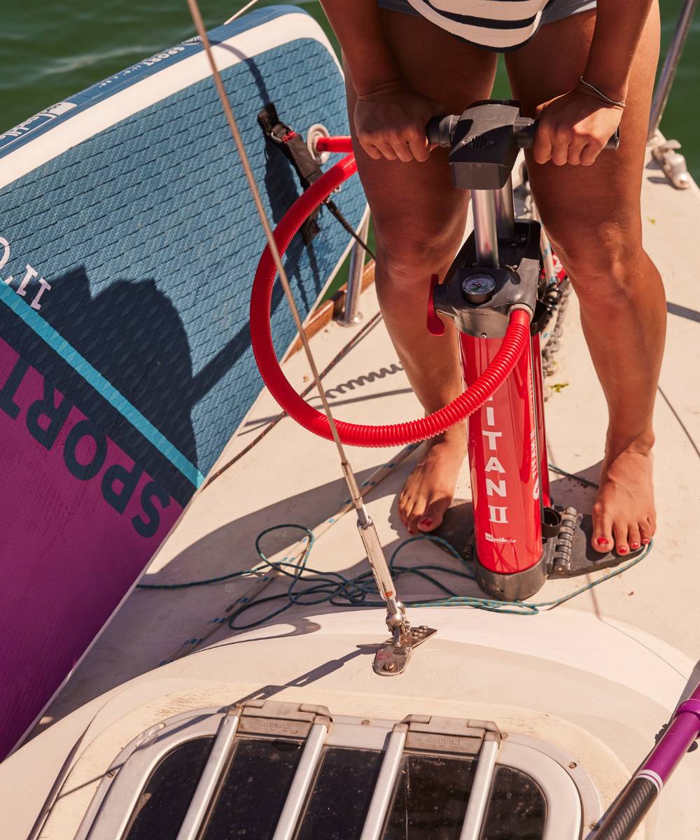 The new Titan Pump #2 is a market-leading SUP pump that inflates a Red Paddle Co board in half the time and with significantly less effort. Thanks to its improved design, it folds down more compactly and takes up even less space in the bag.